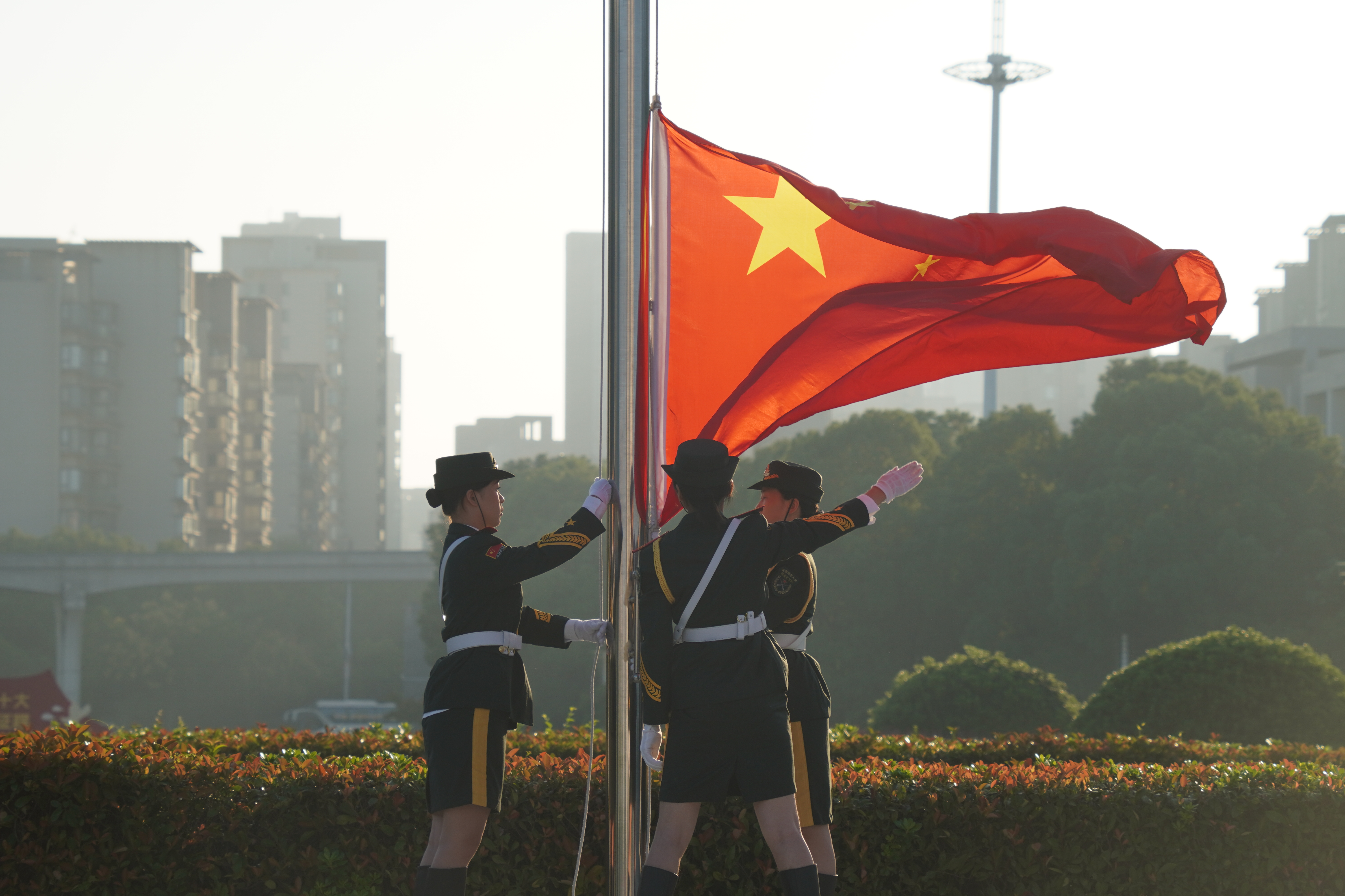 上午7时整,仪式在庄严氛围中正式开始。英姿飒爽的国旗护卫队迈着铿锵有力的步伐,护卫五星红旗行进至升旗台。在雄壮的《义勇军进行曲》中,鲜艳的国旗迎着朝阳冉冉升起,全体师生肃立行注目礼,齐声高唱国歌,激昂的歌声展现了物电学子昂扬向上的精神风貌。