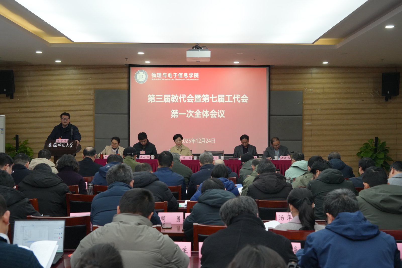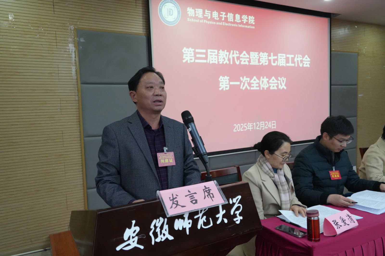 在物电楼304报告厅召开第三届教职工代表大会暨第七届工会会员代表大会。校教代会执委会副主任、机关党委书记汪俊武受邀出席,退休教师代表作为特邀人员列席会议,黑料正能量