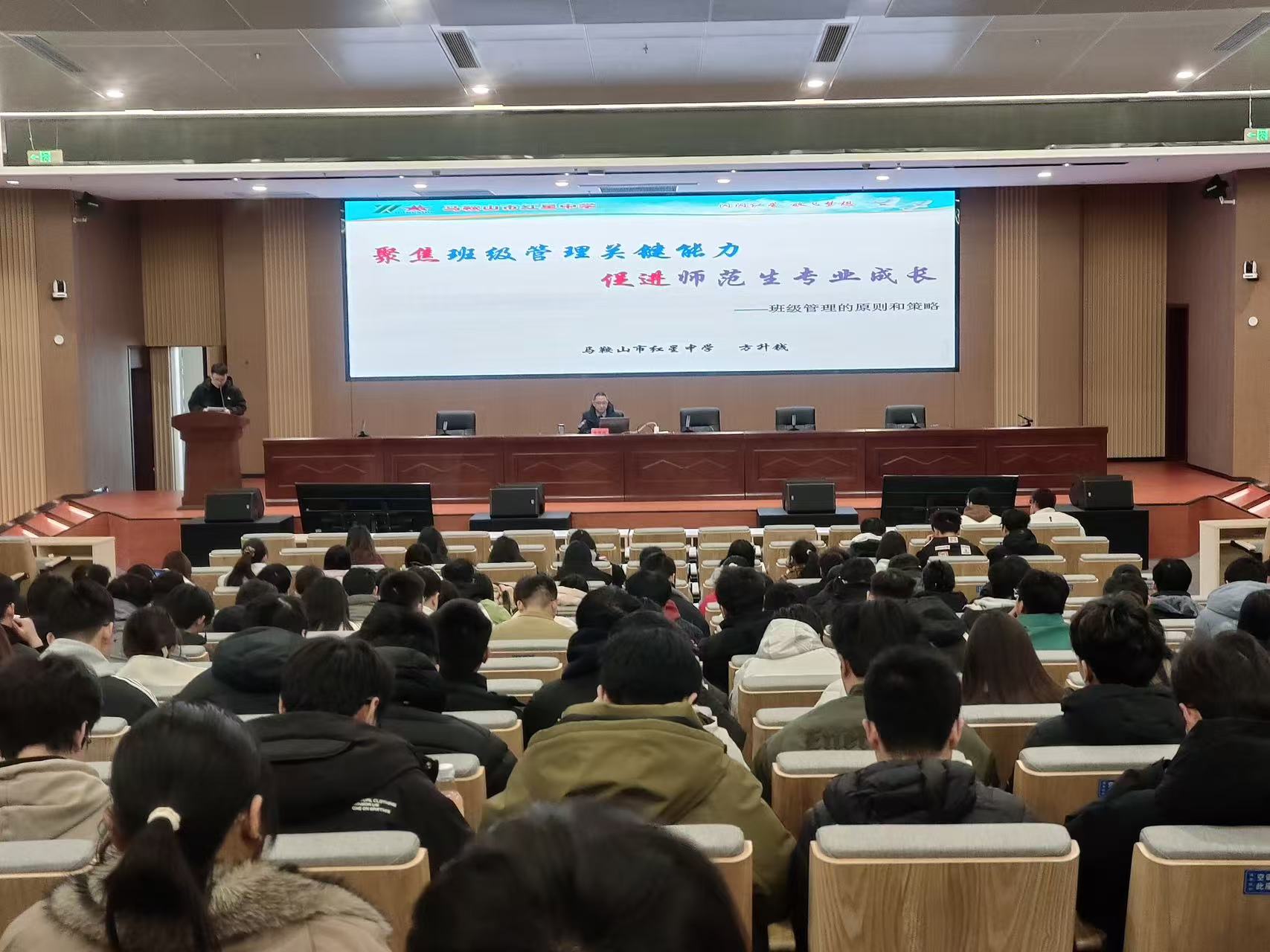 在文典楼西裙楼三楼报告厅举行《班级管理指导与训练》课程暨师范生教育教学能力提升系列讲座。本次活动邀请安徽省教育科学研究院物理教研员、中学特级教师杨思锋以及安徽省特级教师、安徽省首届江淮好班主任、“马鞍山市名班主任工作室”主持人、正高级教师方升钱作为主讲嘉宾,开展了两场精彩的教学分享。黑料正能量