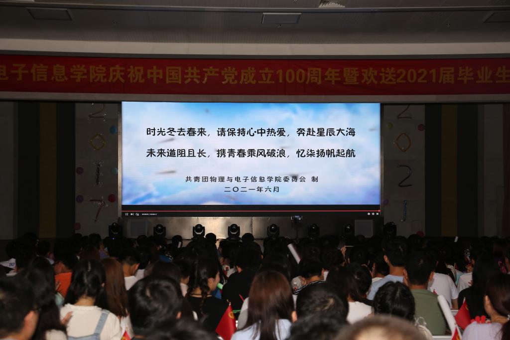 老师们对毕业生们的美好祝愿和殷切期望,走过的道路师生相伴成长,有梦就追,永远朝阳。晚会最后,全体师生合唱《没有共产党就没有新中国》,用歌声向我们伟大的中国共产党致敬。