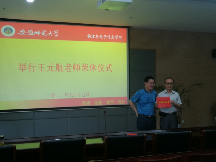 师德专题教育安排,领学了《教育部关于在教育系统深入开展向王红旭同志学习的通知》;之后,举办了王元航老师光荣退休仪式,仪式上李娟从教学工作、立德树人、服务学等方面对王老师给予了高度评价,郑贤锋为王老师颁发了荣退证书,最后王老师发表了感言。
