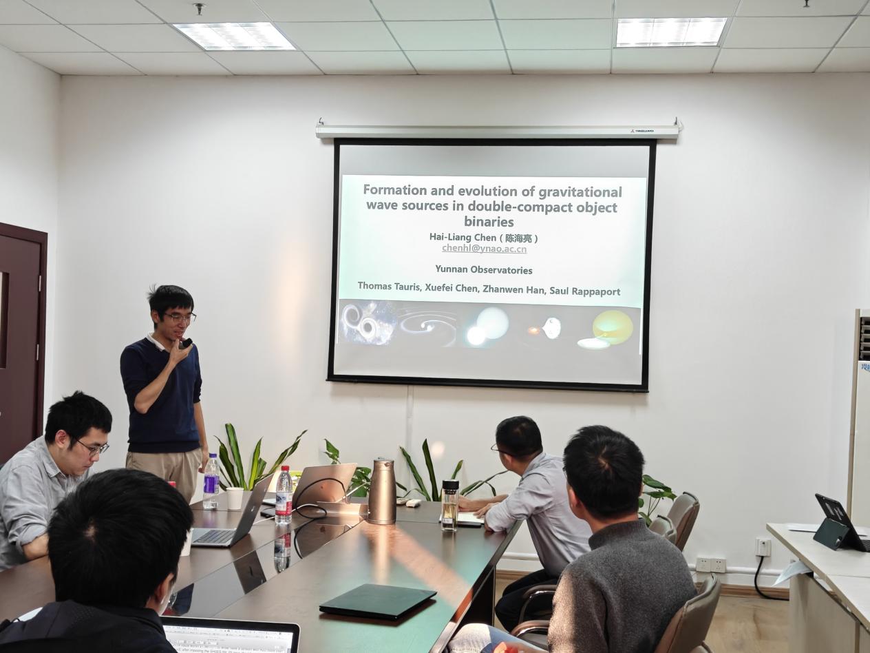 云南天文台研究员陈海亮于11月12日来校进行学术交流,并做了题为《Formation and evolution of gravitational wave sources in white dwarf binaries and neutron star binaries》的学术报告。报告会在黑料正能量
