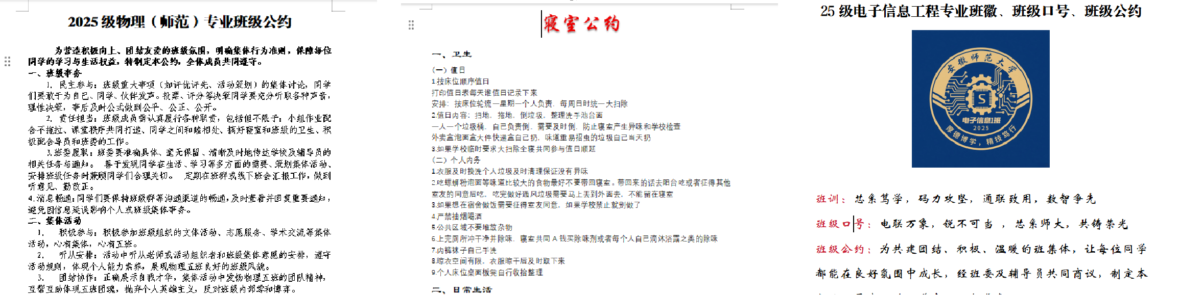三次评比,强化班情班规早明晰