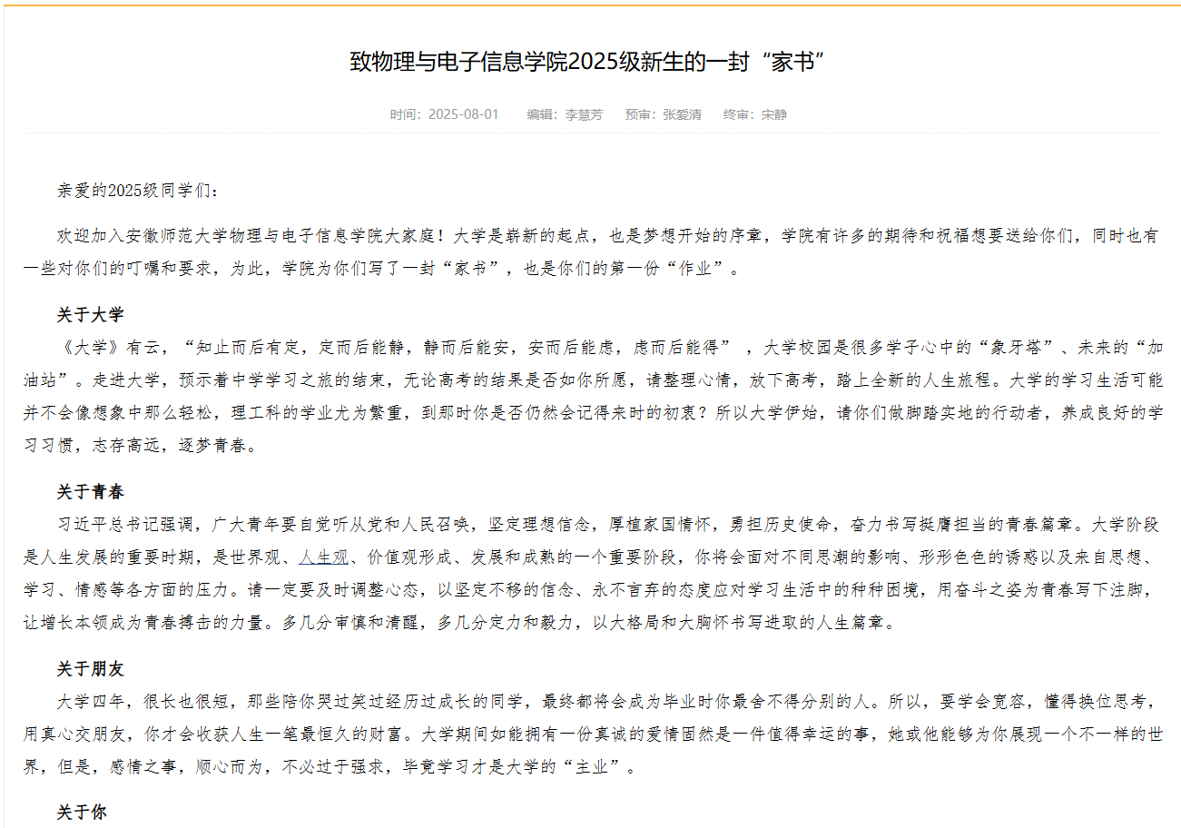 2025级新生的一封“家书”》随录取通知书送至学子手中,既含欢迎与祝福,更藏“大学认知早筑基”的深意。黑料正能量