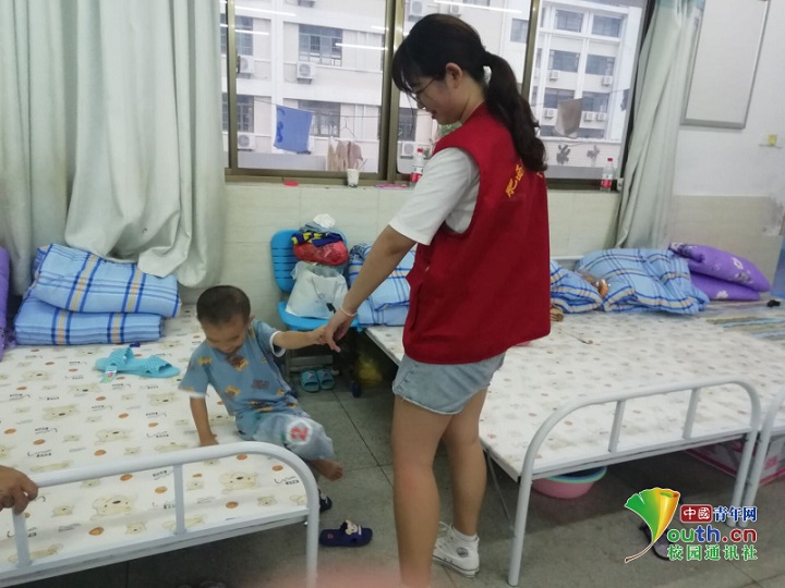 的徐姚同学,从7月20日起参加合肥市后勤志愿服务工作。徐姚同学先是加入到合肥市蜀山区防汛防涝的志愿队伍,冒着大雨巡逻社区、搬运沙袋。当得知合肥市肥西区有多个灾区安置点急缺志愿者,受灾孩子急需有人照顾时,徐姚主动报名,转战受灾群众安置工作。变的是服务地点,不变的是志愿服务的初心。徐姚先后服务在上派中学、肥西三中两个安置点,每天完成日常巡逻、搬运物品、分发餐食等工作。工作之余,徐姚积极发挥大学生专长,主动辅导孩子功课,跟孩子们互动交流,解决家长的“燃眉之急”,缓解受灾孩子焦虑不安情绪,成为孩子们眼中的“知心姐姐”。