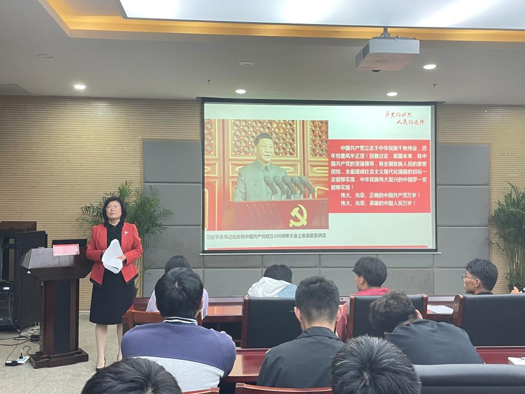 院党委秘书、组织员王梦晓结合百年来中国共产党青年工作的历史性成就,从“一百年前,党的诞生承载着广大青年的理想追求;一百年间,党领导广大青年书写奋斗华章;新起点,党的伟大事业寄望大国青年砥砺作为!”,让学生们深刻感知到青年的力量,同时也更加明白面对百年未有之大变局,应当勇于承担起实现中华民族伟大复兴梦的重担,不负韶华,砥砺前行。王梦晓还对入党流程、党员标准等方面作了详细介绍。