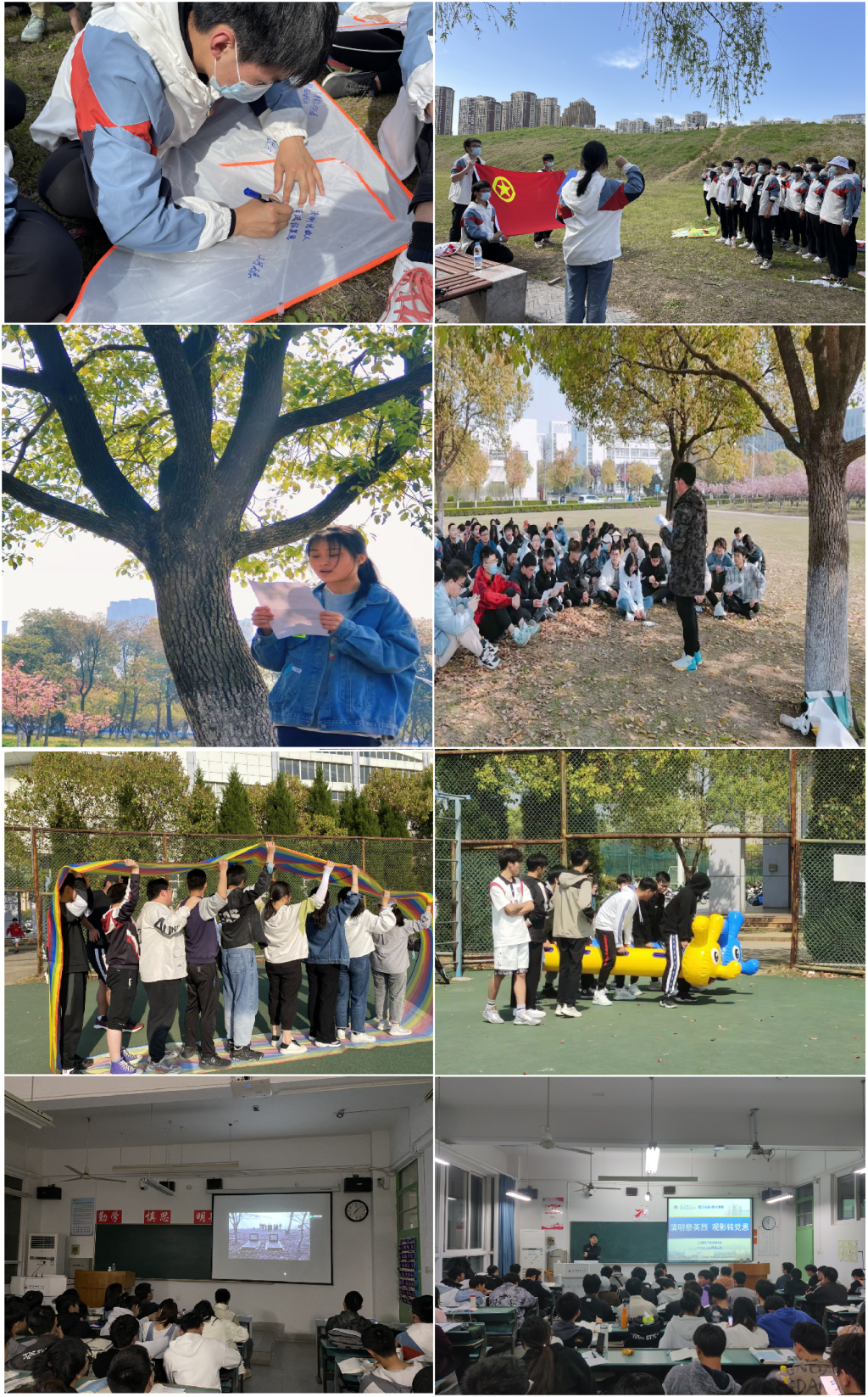 其他班级团支部亦围绕主题采用大学生喜闻乐见的形式,认真开展了“纸鸢寄相思,清明怀故人”、“讲好英烈故事,传承红色基因”、“强健我体魄,砥砺我心志”、“清明祭英烈,观影铭党恩”等团日活动。