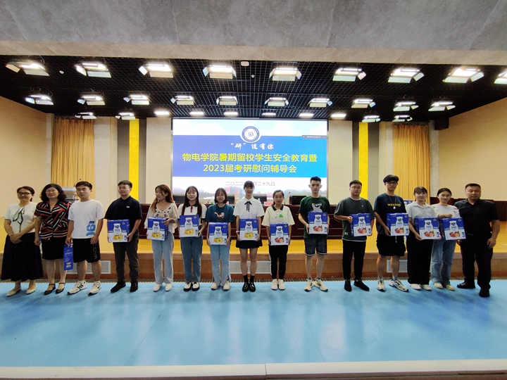提供的暑期条件,认真学习和科研;要严守规章制度,遵守学校的各项管理规定;要高度重视安全,要始终把安全放在首位,当好安全第一责任人。她希望考研学子要有合作,与“研”友相互扶持、资源共享;要有目标,要学会科学择校、避免扎堆;要有坚持,不能半途而废,要一站到底。会后,全体领导老师为学生代表颁发考研慰问品并合影留念。