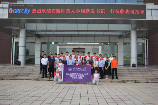 周新发在讲话中指出,安徽师大办学资源丰富、学科门类齐全、科研实力突出;格力电器自主创新能力强、实力雄厚、有成熟的生产线和营销市场,双方互补性强,一直以来合作有基础、交往很频繁、关系很密切,达成了诸多合作共识。他强调,希望双方进一步提升校企合作深度,共同推动双方在人才培养、科技创新、技术攻关、成果转化等方面的开展深度合作;双方进一步加大人才供需合作力度,强化校企协同育人,实现人才供给与需求的“无缝”对接,真正培养出国家需要的创新型、复合型、应用型人才;他希望在格力实践的同学们进一步提升对社会实践的认识高度,在社会观察、国情考察、产业体察中了解国情社情民情,感受祖国发展变化,感受各行业蓬勃发展的生动实践,坚定理想信念,切实增强本领,积极投身强国伟业,真正做到在社会实践中受教育、长才干、树形象。