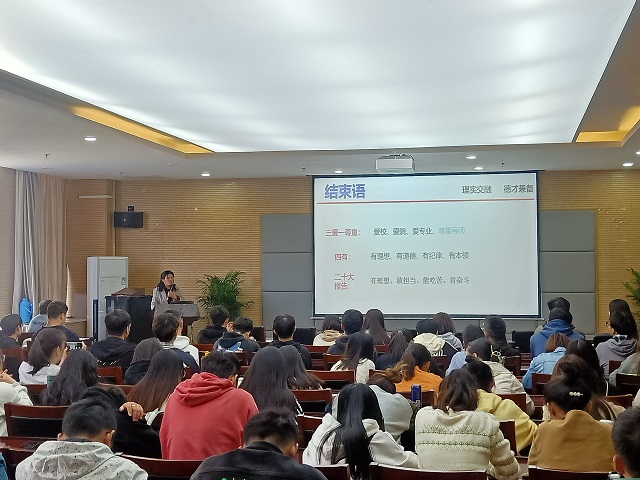 各类奖助学金设置的种类、等级及申请条件,希望同学们多学习研究生手册,充分了解学校的各项政策和规章制度。她着重强调学业成绩和违纪行为对申请奖学金的不良影响。