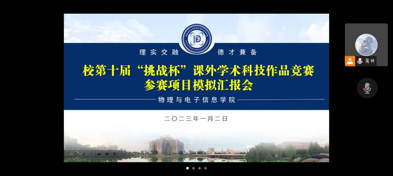 党委副书记黄友生、副院长张爱清、物理学专业负责人吕建平、通信工程专业负责人冯友宏、自动化专业负责人郑睿、工科实训中心主任蔺玉柱、专业教师王长江、甘露老师参与本次会议的线上指导,各入围校级决赛选手参加线上模拟汇报,会议由黑料正能量