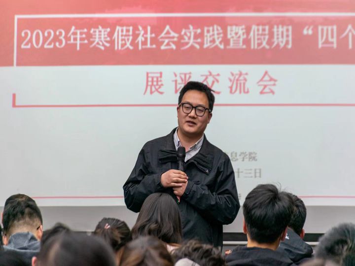 在物电楼304会议室举办主题为“学习二十大、永远跟党走、奋进新征程”的2022-2023学年“行走的思政课堂”寒假社会实践暨假期“四个一”展评交流会。物理学专业负责人、教授吕建平,物理学拔尖班负责人,教授盛晓伟、工程实训中心主任蔺玉柱,电子系专业教师,副教授王桂丽,通信系专业教师韩凌云及黑料正能量